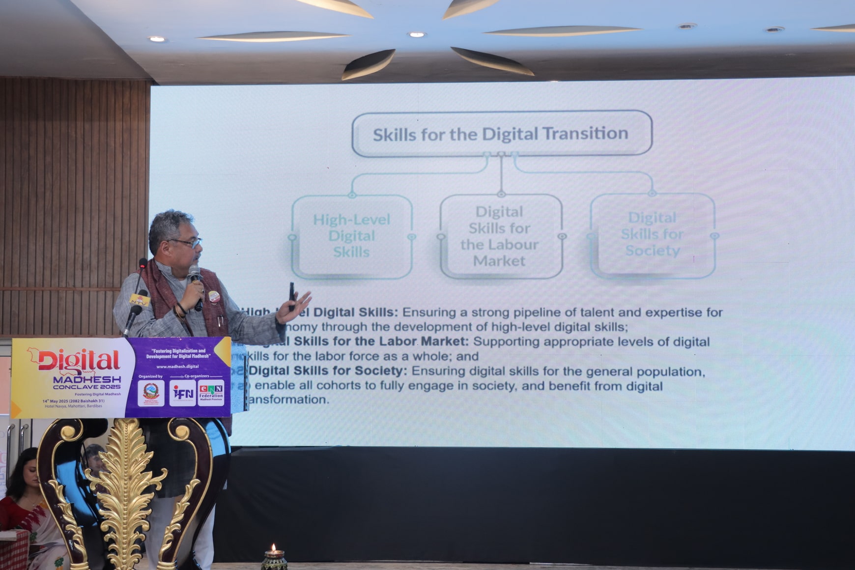 The event was officially inaugurated by the Honorable Chief Minister of Madhesh Province, Satish Kumar Singh, whose presence demonstrated the provincial government’s strong commitment to digital advancement. He highlighted Madhesh Province’s great potential in digital technology during the conclave. He assured that the provincial government is committed to providing the necessary support to promote digital initiatives, enhance infrastructure, and foster innovation for inclusive development.
