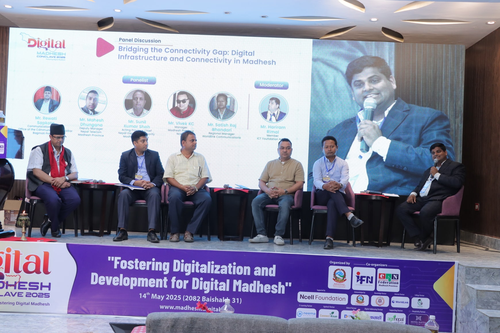 Held on 14th May 2025 (2082 Baishakh 31), the Digital Madhesh Conclave 2025 served as a pivotal initiative aimed at catalyzing a collective drive towards realizing the vision of a digitally empowered Madhesh Province. This one-day event held at Hotel Navya, Bardibas, Mahottari, marked a significant step toward advancing the digital agenda of Madhesh Province and centered around the main theme “Fostering Digitalization and Development for Digital Madhesh” featuring 3 Keynote 4 lightning presentations , and 3 panel discussions across 3 thematic areas.